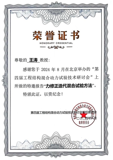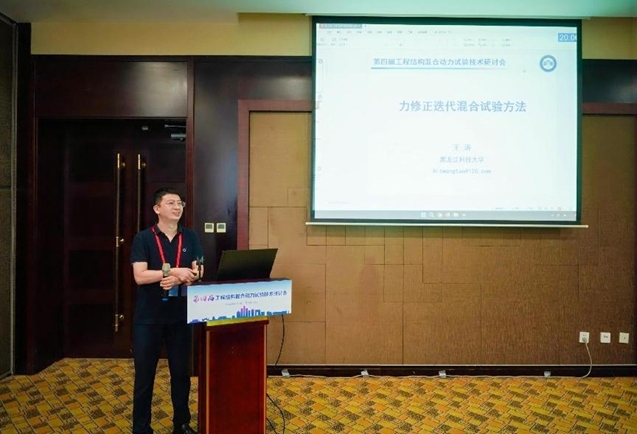 同时,公司王涛教授在研讨会上做了特邀作学术报告“力修正迭代混合试验方法”,交流了课题组在迭代方法、多任务加载方法和自适应模型力修正方法等混合试验领域关键问题的最新研究进展。