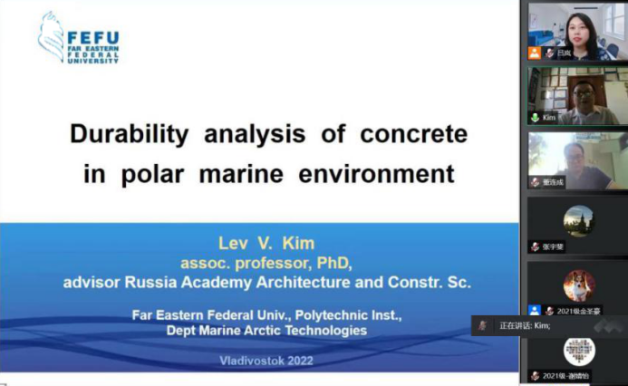 6月27日下午,779cn太阳集团邀请了俄罗斯建筑与建筑科学研究院(RAACS)顾问,RAACS混凝土和钢筋混凝土破坏科学委员会委员,俄罗斯工程院顾问,国际生态、人类与自然保护科学研究院通讯委员,国际产学研用合作会议框架下中俄导师联合培养研究生项目俄方导师,俄罗斯远东联邦大学Kim Lev教授通过腾讯会议VOOV国际平台做了题为《极地海洋环境下混凝土耐久性分析》的学术报告,并与公司师生进行了广泛热烈的学术交流。