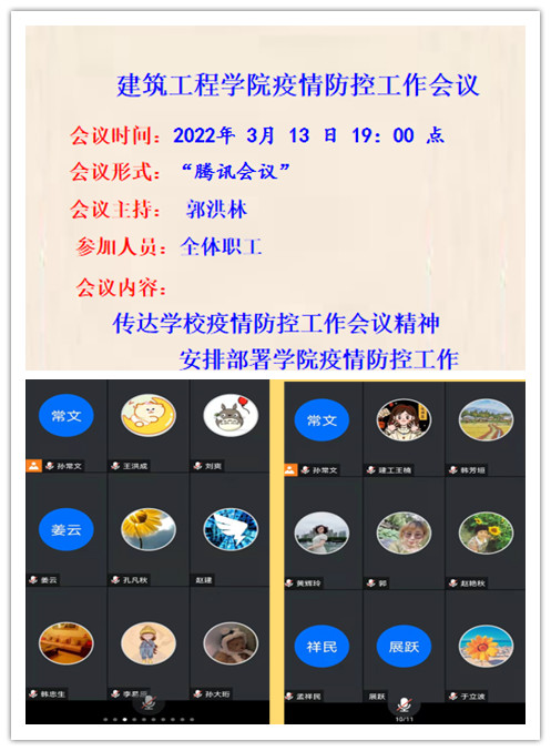 为迅速落实学校疫情防控工作会议精神和要求,在扎实做好疫情防控工作的同时,确保各项工作推进,公司于3月13日19:00时组织召开了全院职工线上会议,会议由公司党委书记郭洪林主持。