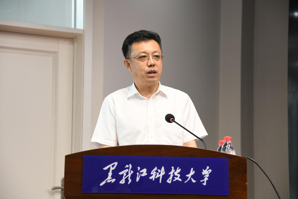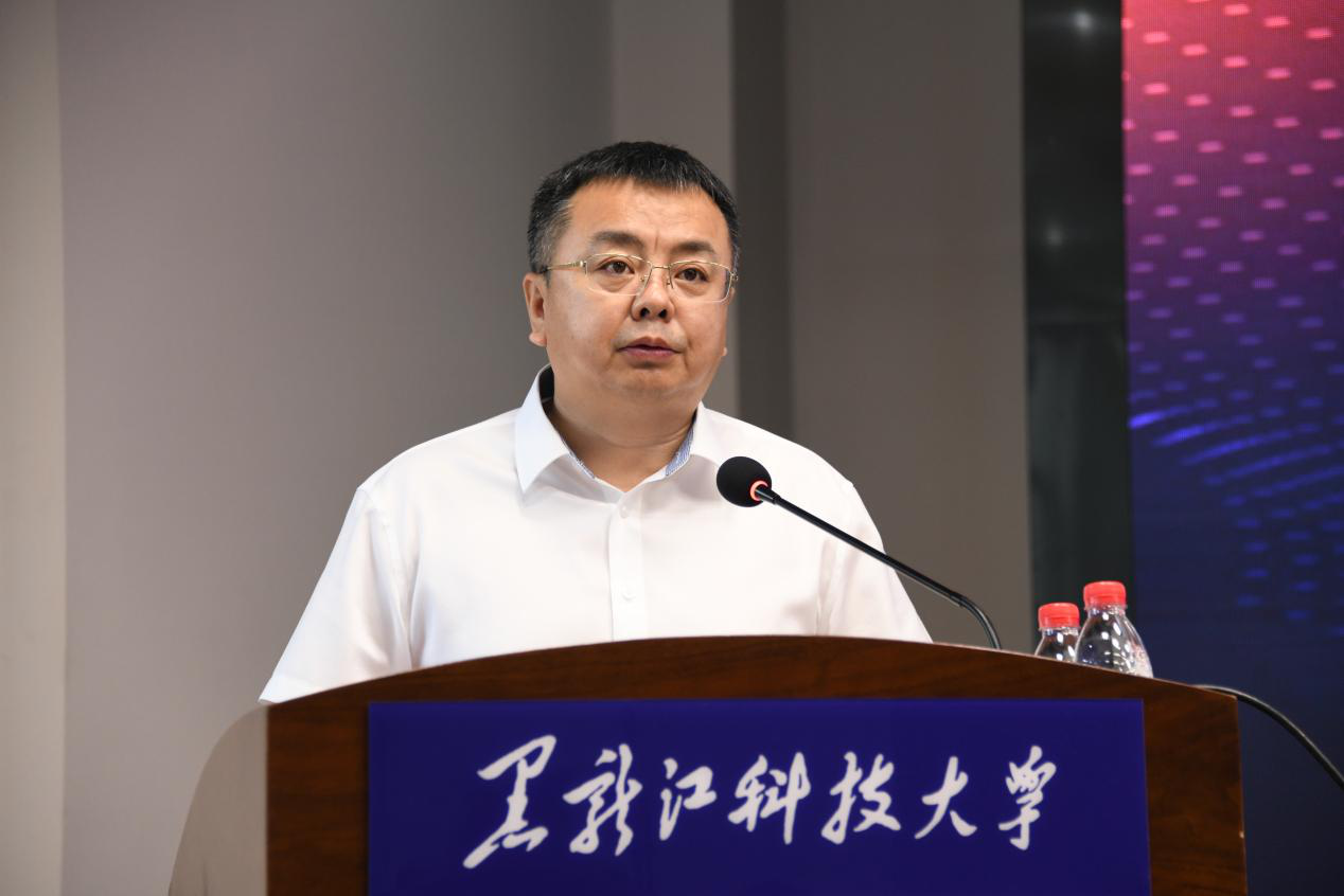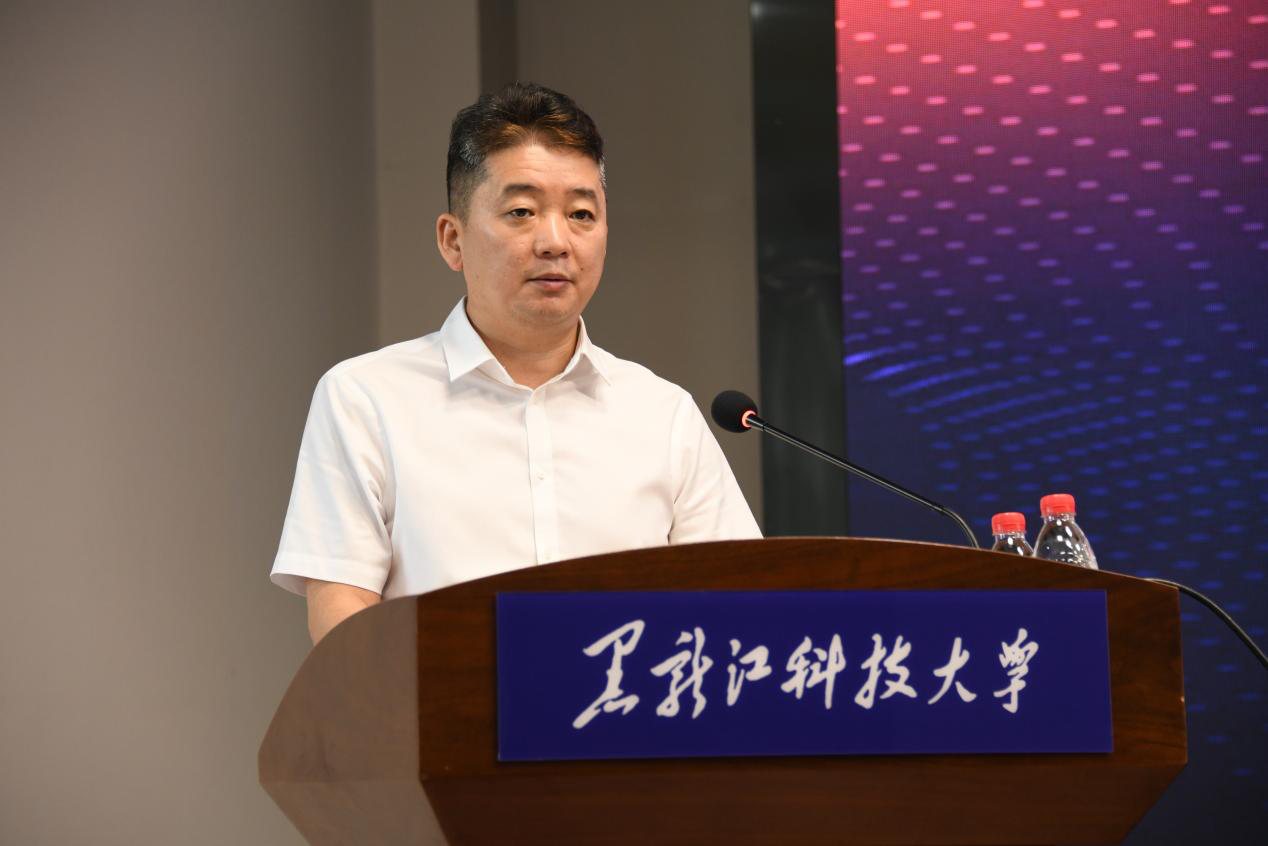 周宏力首先代表学校致辞。周书记指出智能建造产业学院成功获批黑龙江省首批现代产业学院建设点,这是对学校和建工学院坚持开展产教融合、推进校企合作工作的肯定,对今后学校在服务社会、服务龙江、探索校企合作协同育人上具有里程碑意义。现代产业学院为高水平应用型本科高校建设提供了一种平台承载和实践路径。把企业一线需求与高校人力资源配置高度融合,把企业用人标准转化为学校教学标准,把新技术、新工艺实时融入课程内容,这都是现代产业学院应有之意。建设现代产业学院是贯彻国家战略需求、促进高等教育与地方经济协同发展、培养现代企业亟需高水平应用型人才的重要举措。学校将为产业学院提供坚实的资源、制度、管理保障,努力与企业一道建成“共建、共管、共享、共担”的校企协同育人新格局。希望779cn太阳集团智能建造产业学院继续凝聚校企合作优势,在人才培养、社会服务等领域开展更大范围、更深层次合作,打造校企合作新典范!