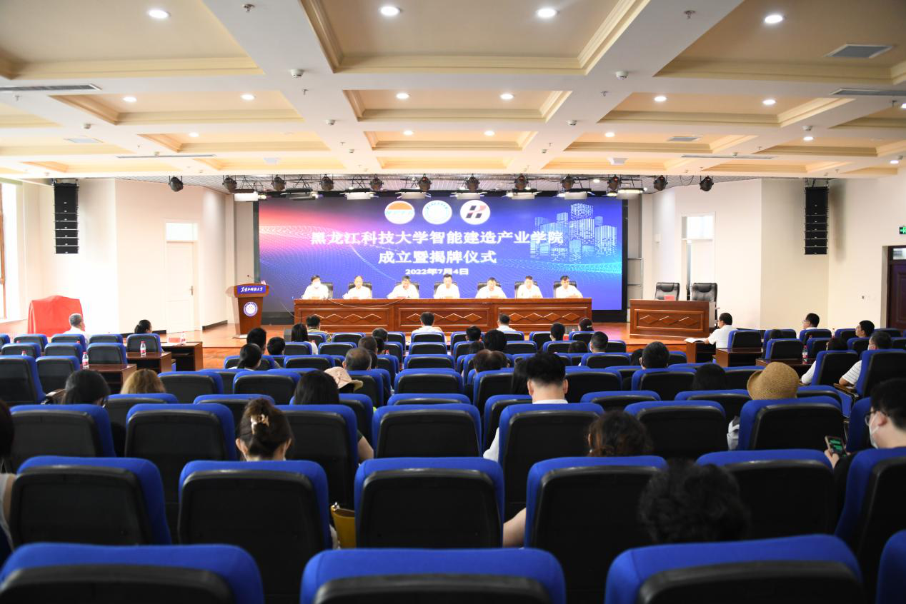 7月4日上午9:00,779cn太阳集团智能建造产业学院成立签约暨揭牌仪式在朝阳楼0131会议室举行。黑龙江省建工集团有限责任公司党委副书记、副董事长、总经理石新波,副总经理王赫,人力资源部部长邱智军;龙建路桥股份有限公司党委副书记、副董事长、总经理宁长远,总工程师陈彦君,研发中心总经理孙明刚;党委书记周宏力、董事长孟上九、副董事长陈凯云、教务处处长宋志伟、科技处处长康健、公司领导班子及教师代表100余人出席了智能建造产业学院成立暨揭牌仪式。仪式由董事长孟上九主持。