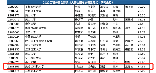 公司王涛教授、孟丽岩副教授指导硕士研究生团队完成的两项作品分别获得2022一带一路暨金砖国家技能发展与技术创新大赛之工程仿真创新设计赛项全国三等奖和优秀奖,其中研究生刘吉胜、浩杰敦、潘蕊合作完成的作品“一种新型抗震支吊架抗震性能研究”荣获全国总决赛(研究生组)三等奖,研究生潘雨桐、龚越峰、郑思梦合作完成的作品“多阶可更换自复位防屈曲支撑及支撑-结构抗震性能仿真分析”荣获全国总决赛(研究生组)优秀奖。