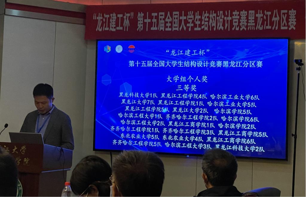 “龙江建工杯”第十五届全国老员工结构设计竞赛黑龙江分区赛于2022年9月23至25日在黑龙江大学举行,公司共有5支队伍参加此次竞赛。经过12小时模型现场制作和加载试验,我院参赛的5支队伍中有3支队伍获得个人二等奖、2支队伍获得个人三等奖,学校获得团体二等奖和优秀组织奖。