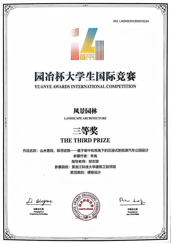 第十四届园冶杯老员工国际竞赛决赛在南京落下帷幕,本届竞赛,由园冶杯国际竞赛组委会主办,中央美术学院、日本九州大学、南京林业大学、法国拉维莱特大学、韩国江陵原洲国立大学联合协办。公司风景园林专业获得课程设计类三等奖一项、主题竞赛类荣誉奖一项。