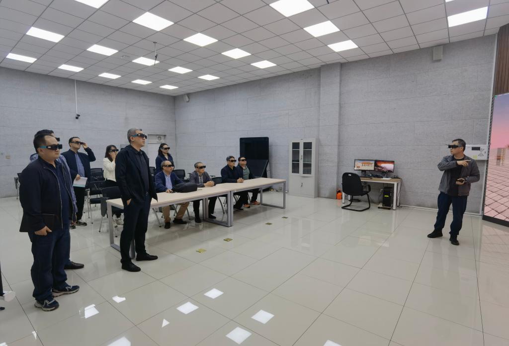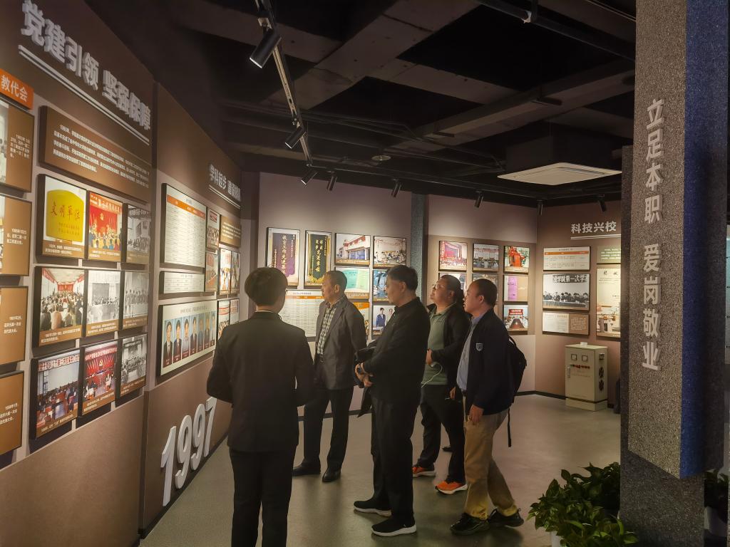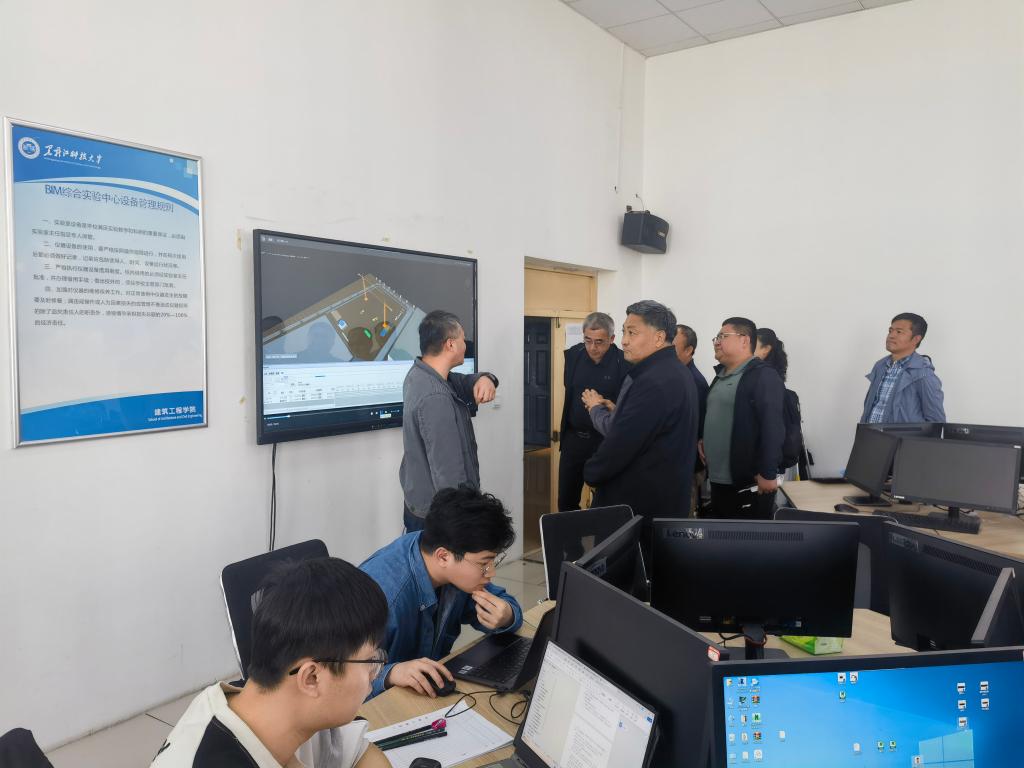 座谈会后,来访人员参观了公司建筑全过程虚拟仿真实验教学中心和BIM综合实验中心,工程管理系主任赵建介绍了两个中心建设的基本情况,展示了高沉浸感三维立体显示交互环境下的教学方法及学校在建碳谷大厦的BIM建模方法。随后,双方还共同参观了学校校史馆和模拟矿井,了解公司发展历史和办学特色。