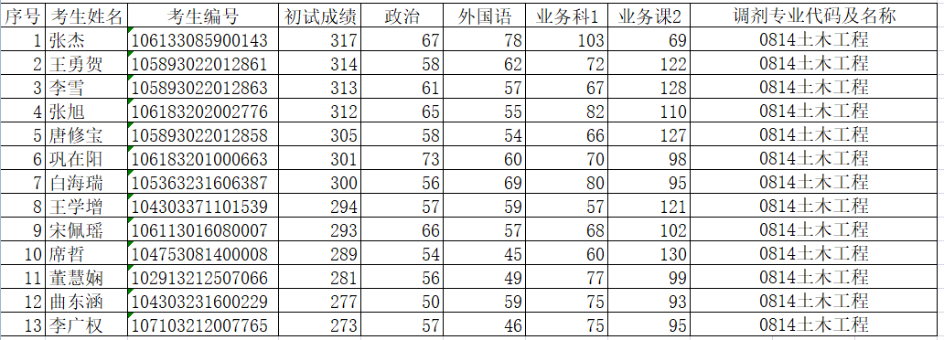 779cn太阳集团4月6日(0时-12时)调剂进入复试考生名单