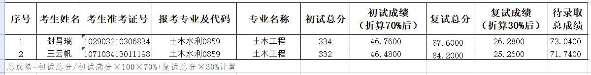 土木水利(0859)第三轮待录取汇总表