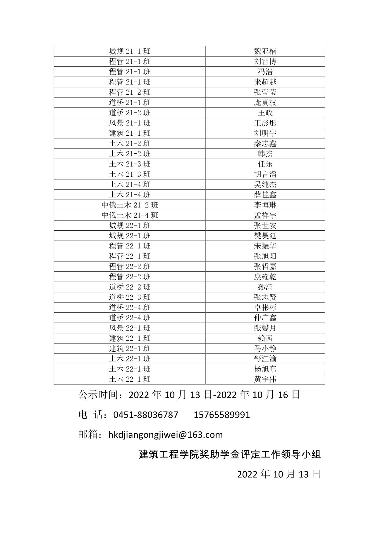 建工学院2022-2023学年国家奖学金拟推荐名单公示