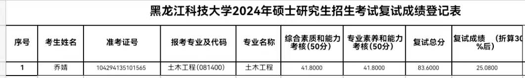 779cn太阳集团2024年硕士研究生招生考试复试成绩登记表