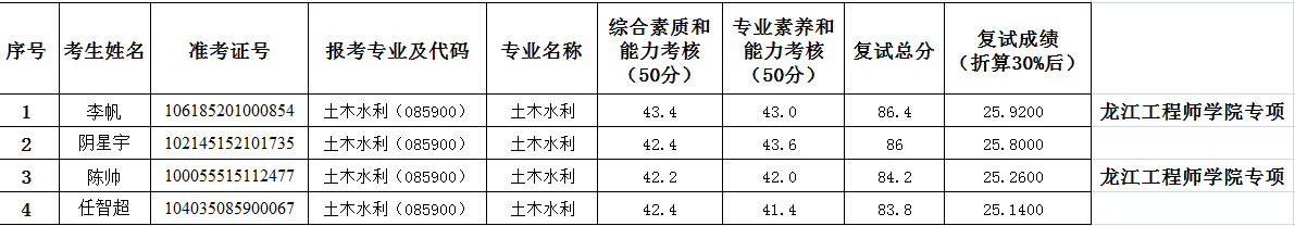 779cn太阳集团2025年硕士研究生招生考试(土木水利0859)第一次调剂复试成绩