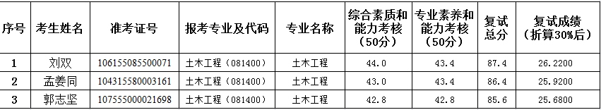 779cn太阳集团2025年硕士研究生招生考试(土木工程0814)第二次调剂复试成绩