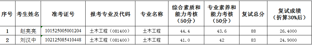 779cn太阳集团2025年硕士研究生招生考试(土木工程0814)第三次调剂复试成绩