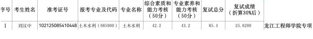 779cn太阳集团2025年硕士研究生招生考试(土木水利0859)第四次调剂复试成绩