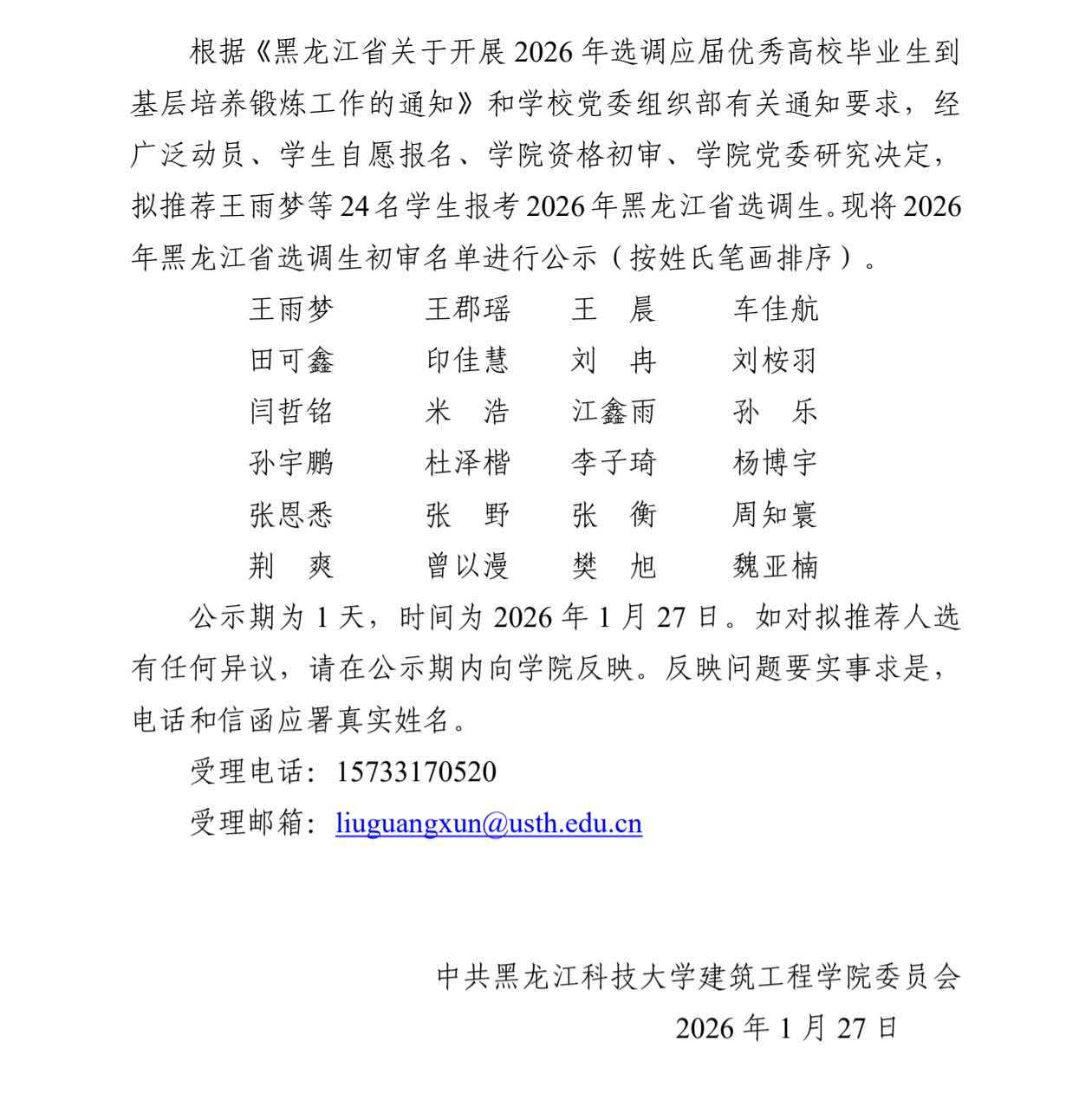 779cn太阳集团2026年黑龙江省选调生初审名单公示