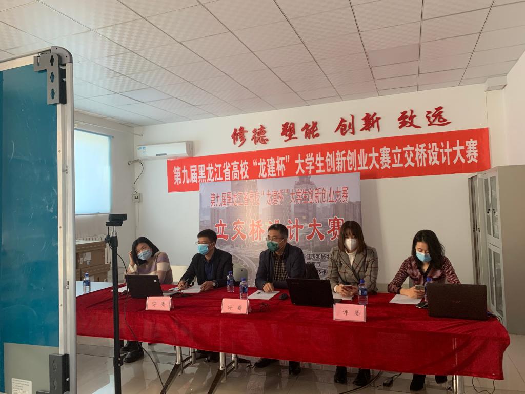 其中立交桥设计竞赛在哈尔滨职业技术学院举行,共有来自省内16所高校的29支队伍参加了本次比赛。经过一天的线上角逐,由公司779cn太阳集团许珊珊等老师指导的道路桥梁与渡河工程专业员工参赛作品“冰之霓裳”和“冰城之心”分别荣获大赛一等奖,“百尺桥”荣获二等奖。