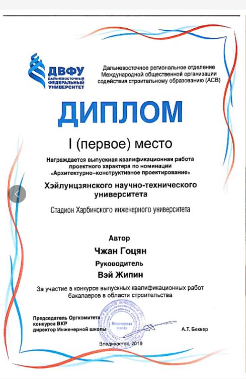 公司提交的哈尔滨工程大学体育馆设计在本次竞赛中获得了建筑设计竞赛一等奖。公司首次参加中俄建筑联盟国际会议及毕业设计竞赛活动,该项活动对于提高公司土木工程及相关专业的毕业设计质量、促进中俄毕业设计教学交流奠定了基础。