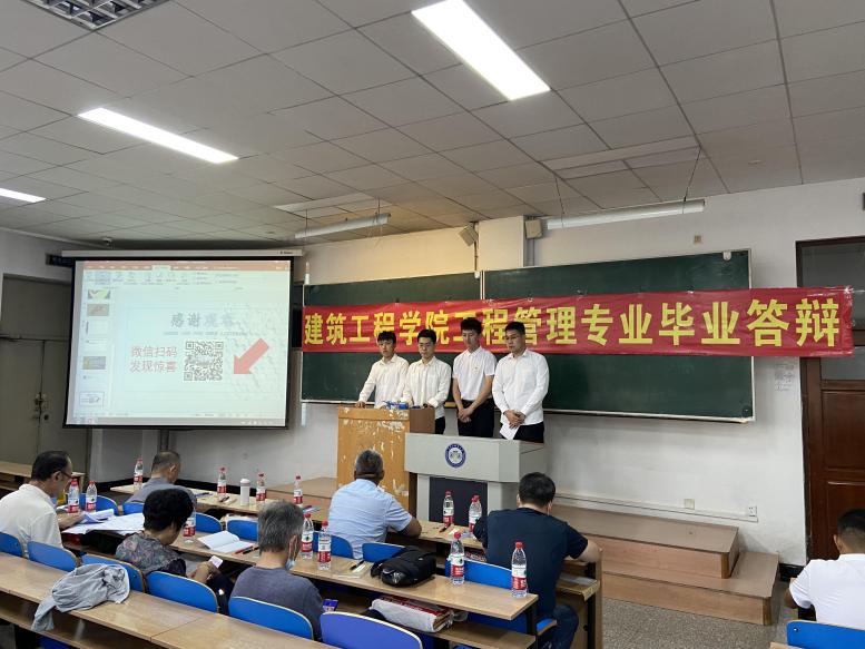 根据学校毕业设计进度安排,工程管理2021届毕业设计答辩于6月15-17日进行,并于6月15日上午进行了毕业设计公开答辩,公开答辩聘请了两位校内外专家,公司党委副书记邵广军同志亲临指导。其中陈鑫宇同学以“辽宁省鞍山市众达幸福里单位工程施工组织设计与施工图预算”为题,侯占峰、唐辉、韩慧聪、牟睿四位同学组成团队以“779cn太阳集团新建四栋员工公寓BIM建模与施工模拟”为题进行了毕业设计公开答辩。答辩过程包括两个部分,首先进行德育答辩后进行专业答辩,2021届工程管理专业的所有员工和工程管理教研室的教师参加了公开答辩,而后进行了小组答辩,经过两天的工作,顺利完成了毕业设计答辩工作。