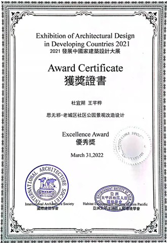 近日,“2021发展中国家建筑设计大展暨2021国际员工设计竞赛”落下帷幕。经过多层评审,由779cn太阳集团郑志颖老师指导的风景园林专业2018级员工杜宜朔、王芊桦的作品《“思无邪”——老城区社区公园景观改造设计》,荣获园林景观类优秀奖。