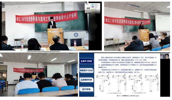 根据学校教学计划安排,道路桥梁与渡河工程专业2022届本科生毕业设计答辩于2022年6月8日-11日以线上线下混合的方式顺利举行。6月8日上午8:30-11:00在教学主楼EN0301进行了公开答辩,6月8日13:30-6月10日16:00在教学主楼WS0917、WS0921进行了小组答辩。郭洪林书记、姜封国副经理、董连成副经理分别以线上线下的形式参加了公开答辩并给予指导,经全体师生共同努力,答辩工作圆满结束。