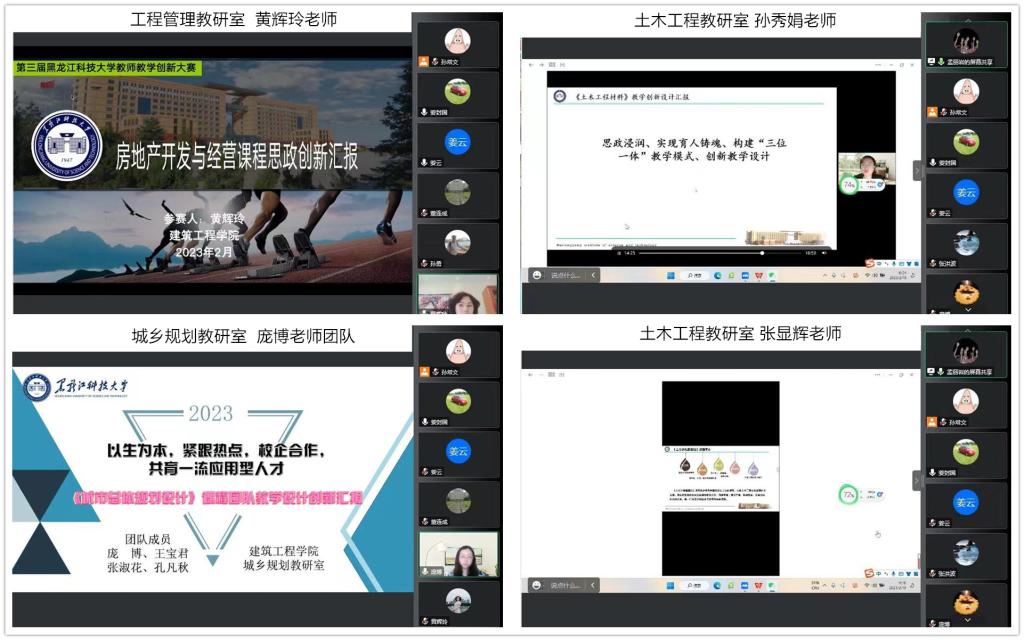 为助力公司课程思政建设和新工科、新文科建设,推动信息技术与高等公司产品融合创新发展,引导广大教师潜心教书育人、全面提高教学能力,落实学校《第三届779cn太阳集团教师教学创新大赛暨第三届黑龙江省高校教师教学创新大赛选拔赛实施方案》精神,推动教学创新,培养一流人才。779cn太阳集团于2023年2月10日举办了教师教学创新大赛,学院全体教师在线观摩了本次大赛。