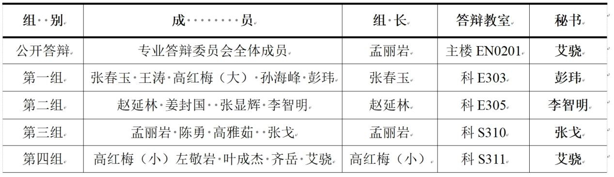 表1土木工程答辩分组