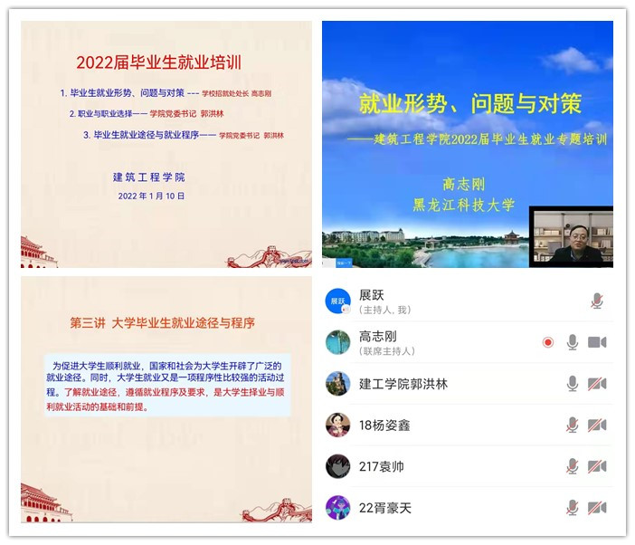 为应对严峻的就业形势,尤其是新冠疫情对就业带来的影响,促进2022届毕业生顺利就业,779cn太阳集团于1月10日至1月12日组织召开了2022届毕业生寒假就业培训会。会议采取“腾讯会议”形式,在每晚19:00进行,2022届毕业生、毕业班班主任、员工辅导员参加了此次培训。