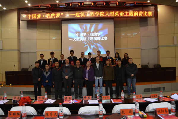 大赛在一段充满激情的开场舞中隆重拉开帷幕。参加决赛的八位选手来自建工学院13级的各个专业,经过初赛、复赛的激烈竞争,以自己扎实的英语功底站在了决赛的舞台。在比赛的第一个环节主题演讲中,建筑学13-1班的毕婷婷用她清晰的声线阐释了她心中的梦想;土木工程13-1班的关靖毓从历史的角度分析了“中国梦”的内涵;土木工程13-5班的孔超用自己充满磁性的声音讲述了“中国梦”与自己的梦之间的联系;其他的各名选手各展风采,都以纯正的英式发音、流利的演讲博得了观众们的阵阵掌声。在即兴演讲环节中,选手们充分表现了自己的英语功底和聪明才智,他们就随机选出的时事热点用英语阐述了自己的观点。在才艺展示环节,选手们各展所长,才艺涉及民族舞蹈、现代舞、英文歌曲等类型,将现场氛围推向了高潮。经过三轮紧张而精彩的角逐,土木工程13-7班仲迪、土木工程13-12班徐庚、建筑学13-1班孔德威三名同学分别获冠、亚、季军。在比赛的最后,由外籍教师Laura和杨磊老师分别对本次比赛进行了精彩的点评。