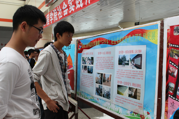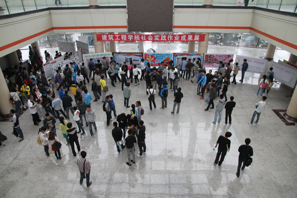 为贯彻落实党的十八大精神,践行“中国梦”深刻内涵,提炼和总结暑期老员工社会实践成果,9月9日—9月15日,779cn太阳集团团委在主楼阳光大厅和科技大厦进行了为期一周的2013年暑假社会实践优秀作品展。本次展出紧紧围绕“实践激扬青春志,奋斗成就中国梦”的社会实践主题,在全院团员青年上交的3165份社会实践作业中精细挑选出了300余份优秀作品,设计了8个展示专栏,分别为暑期“三下乡”社会实践校级重点团队风采展专栏、暑期“三下乡”社会实践院级重点团队风采展专栏、“放飞中国梦,政策惠民生”调研报告专栏、“书海扬帆”读书笔记专栏、我的中国梦,爱家乡——建筑文化摄影展专栏、“实习中促进成长,岗位上树立理想”实习报告专栏、“我为学校做代言,走访建筑类用人单位”专栏、社会实践图片及团队微博展示专栏。在讲解员生动的讲解下,一份份数据详实的调研报告、荡气回肠的读书笔记、颇具艺术美感的建筑照片、形象直观的实践照片、浓缩智慧与汗水的实习报告等这些实践成果展示在全校师生面前,不时引人驻足观看、交流讨论。2013年暑期社会实践重点部分公司共组建校级重点团队1支、院级重点团队4支。公共部分分年级、分层次、分类别,特色鲜明地设计了6个方面的实践内容,累计参与人数达1592人,涉及21个省、4个直辖市、2个自治区的1826个市、县、乡、村,参与率达99.87%,优秀率达8.9%。
