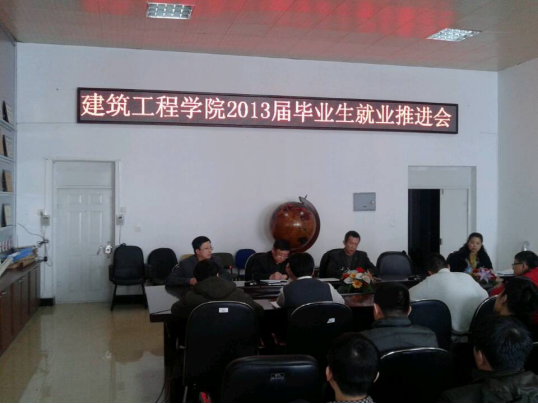 按照学校2013年党政工作要点的部署和安排,为了更好地巩固“就业50强”成果, 切实推进公司2013届毕业生就业工作,确保就业质量和就业率目标的实现,建工学院于2013年3月19日在建工学院会议室召开了2013届毕业生就业推进会。全体教师参加了会议,会议由党委书记尹晓黎同志主持,党委副书记邬承斌、副经理姜云、副经理薛志成出席了会议。